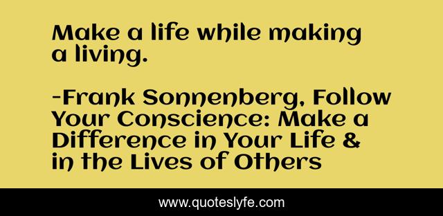 "Frank Sonnenberg, Follow Your Conscience: Make a Difference in Your Life & in the Lives of Others Quotes." Quoteslyfe.com, 2025. Sat. 06 Dec. 2025. <https://www.quoteslyfe.com/quote/Make-a-life-while-making-a-living-247391>.