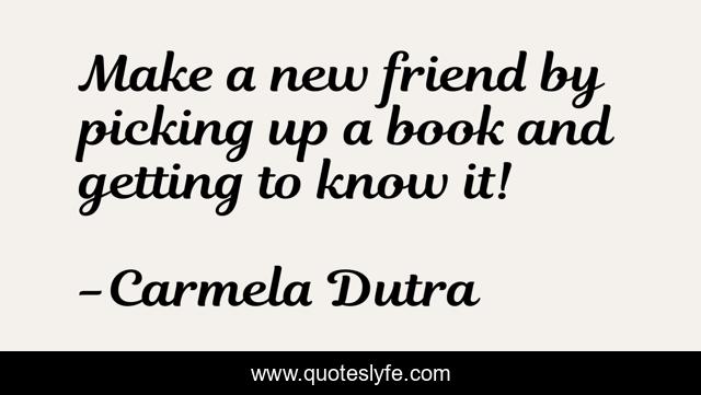 This page presents the quote "Make a new friend by picking up a book and getting to know it!". Author of this quote is Carmela Dutra. This quote is about friends, books, friendship, reading,.
