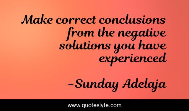 This page presents the quote "Make correct conclusions from the negative solutions you have experienced". Author of this quote is Sunday Adelaja. This quote is about life, conclusions, situations, negative, experience, calling, purpose, truth,.