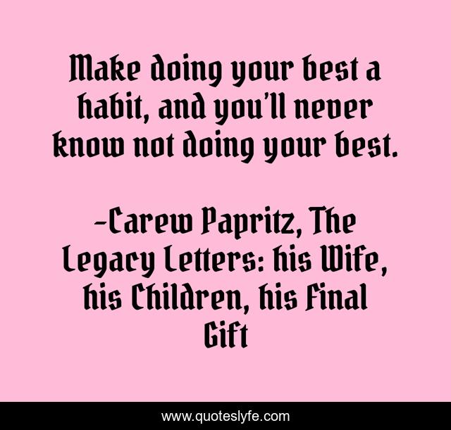 "Carew Papritz, The Legacy Letters: his Wife, his Children, his Final Gift Quotes." Quoteslyfe.com, 2025. Sat. 06 Dec. 2025. <https://www.quoteslyfe.com/quote/Make-doing-your-best-a-habit-and-90754>.
