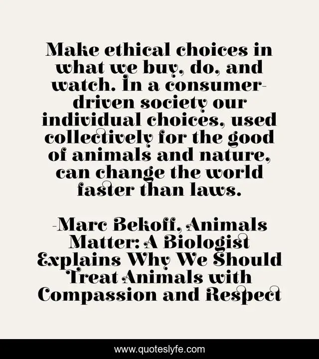 "Marc Bekoff, Animals Matter: A Biologist Explains Why We Should Treat Animals with Compassion and Respect Quotes." Quoteslyfe.com, 2025. Mon. 08 Dec. 2025. <https://www.quoteslyfe.com/quote/Make-ethical-choices-in-what-we-buy-199676>.