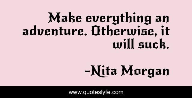 This page presents the quote "Make everything an adventure. Otherwise, it will suck.". Author of this quote is Nita Morgan. This quote is about life, humor, adventure,.