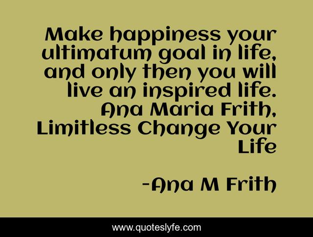 This page presents the quote "Make happiness your ultimatum goal in life, and only then you will live an inspired life. Ana Maria Frith, Limitless Change Your Life". Author of this quote is Ana M Frith. .