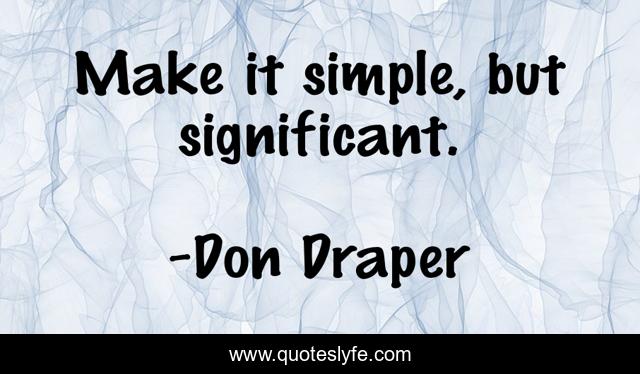 This page presents the quote "Make it simple, but significant.". Author of this quote is Don Draper. This quote is about simplicity, meaning,.