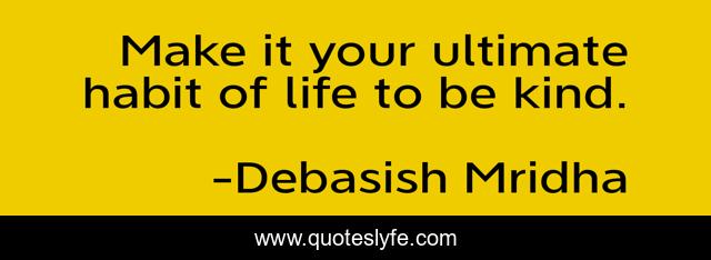 This page presents the quote "Make it your ultimate habit of life to be kind.". Author of this quote is Debasish Mridha. This quote is about make-it-your-habit-to-be-kind, philosophy, debasish-mridha, be-kind, quotes, ultimate-habit, debasish-mridha-md, inspirational, enthusiasm,.