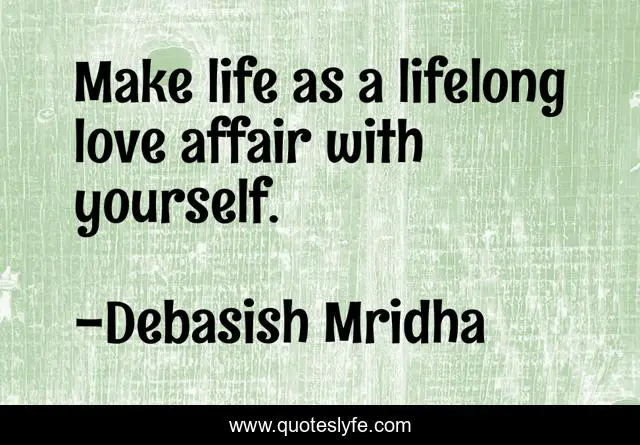 This page presents the quote "Make life as a lifelong love affair with yourself.". Author of this quote is Debasish Mridha. This quote is about life, love, knowledge, inspirational, intelligence, philosophy, wisdom, quotes, affection,.