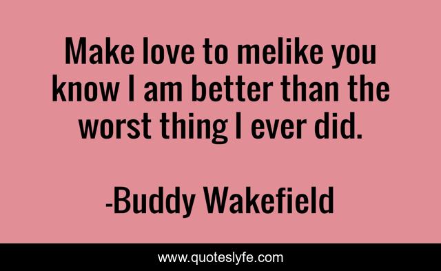 This page presents the quote "Make love to melike you know I am better than the worst thing I ever did.". Author of this quote is Buddy Wakefield. This quote is about buddy-wakefield, acceptance, love, affection, we-are-emergencies,.