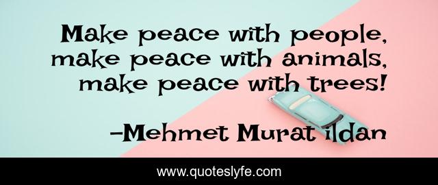 This page presents the quote "Make peace with people, make peace with animals, make peace with trees!". Author of this quote is Mehmet Murat ildan. This quote is about animals, ildan-wise-sayings, make-peace-with-people, peace, trees, make-peace,.