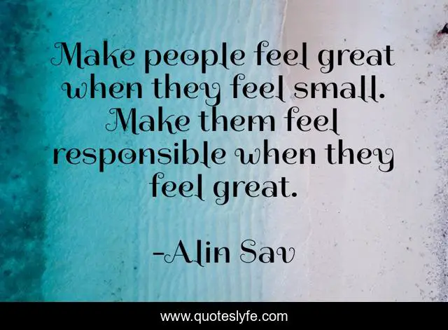 This page presents the quote "Make people feel great when they feel small. Make them feel responsible when they feel great.". Author of this quote is Alin Sav. .