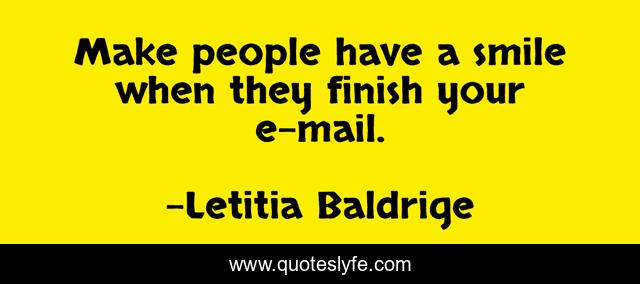 This page presents the quote "Make people have a smile when they finish your e-mail.". Author of this quote is Letitia Baldrige. This quote is about finish, your, people,.