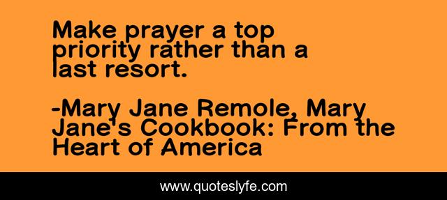 "Mary Jane Remole, Mary Jane's Cookbook: From the Heart of America Quotes." Quoteslyfe.com, 2025. Fri. 05 Dec. 2025. <https://www.quoteslyfe.com/quote/Make-prayer-a-top-priority-rather-than-115317>.