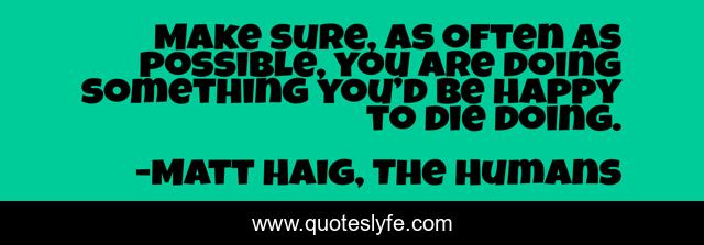 This page presents the quote "Make sure, as often as possible, you are doing something you’d be happy to die doing.". Author of this quote is Matt Haig, The Humans. .