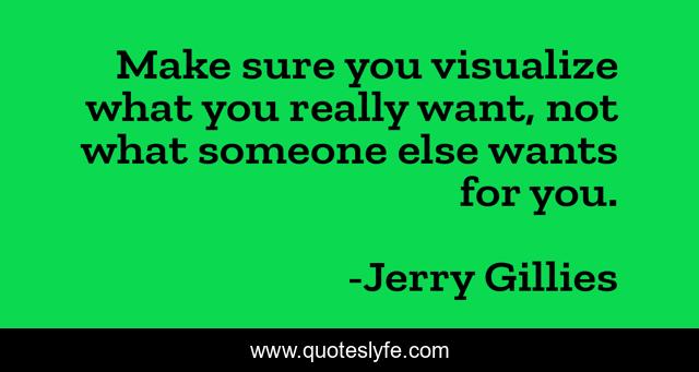 This page presents the quote "Make sure you visualize what you really want, not what someone else wants for you.". Author of this quote is Jerry Gillies. .