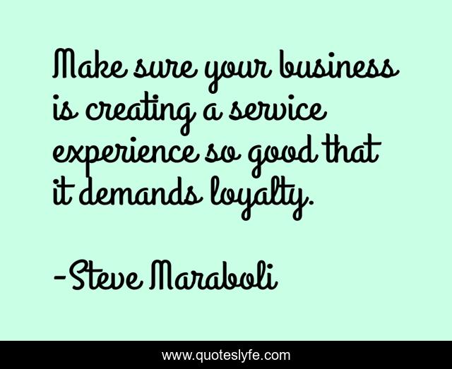This page presents the quote "Make sure your business is creating a service experience so good that it demands loyalty.". Author of this quote is Steve Maraboli. This quote is about business, loyalty, service, experience, creating,.
