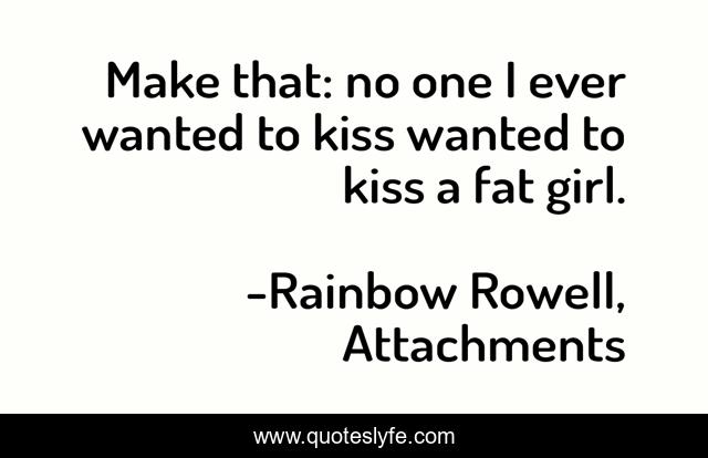 This page presents the quote "Make that: no one I ever wanted to kiss wanted to kiss a fat girl.". Author of this quote is Rainbow Rowell, Attachments. This quote is about girl, fat, kiss,.