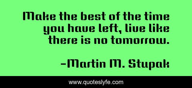 This page presents the quote "Make the best of the time you have left, live like there is no tomorrow.". Author of this quote is Martin M. Stupak. This quote is about relationships, motivation, love, affection, time,.