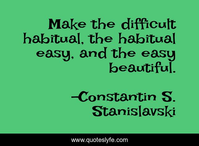 "Constantin S. Stanislavski Quotes." Quoteslyfe.com, 2025. Mon. 08 Dec. 2025. <https://www.quoteslyfe.com/quote/Make-the-difficult-habitual-the-habitual-easy-125385>.