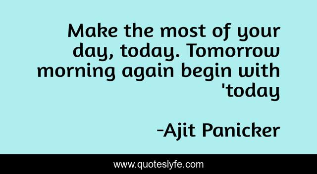 This page presents the quote "Make the most of your day, today. Tomorrow morning again begin with 'today". Author of this quote is Ajit Panicker. .