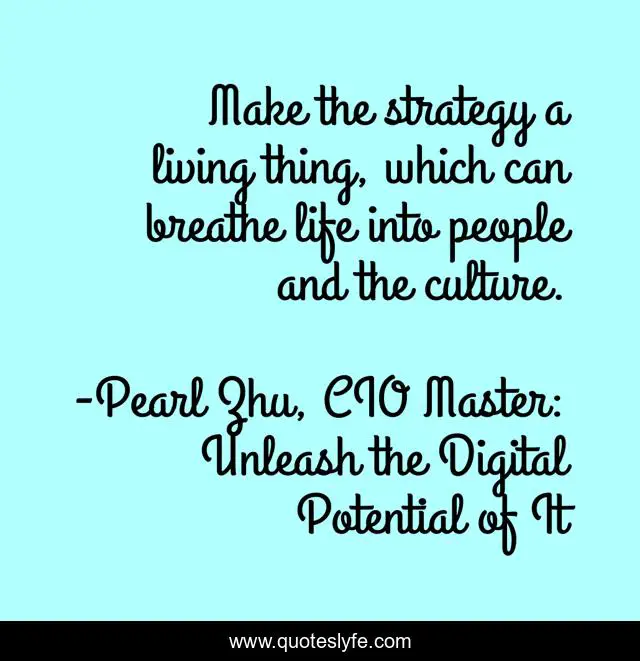 "Pearl Zhu, CIO Master: Unleash the Digital Potential of It Quotes." Quoteslyfe.com, 2025. Tue. 09 Dec. 2025. <https://www.quoteslyfe.com/quote/Make-the-strategy-a-living-thing-which-235444>.