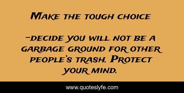 "decide you will not be a garbage ground for other people’s trash. Protect your mind. Quotes." Quoteslyfe.com, 2025. Tue. 09 Dec. 2025. <https://www.quoteslyfe.com/quote/Make-the-tough-choice-48981>.