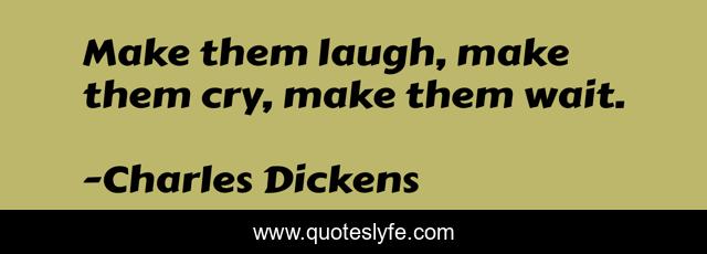 This page presents the quote "Make them laugh, make them cry, make them wait.". Author of this quote is Charles Dickens. .
