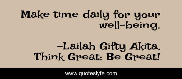 "Lailah Gifty Akita, Think Great: Be Great! Quotes." Quoteslyfe.com, 2025. Sun. 07 Dec. 2025. <https://www.quoteslyfe.com/quote/Make-time-daily-for-your-well-being-140386>.