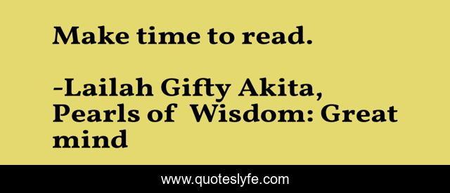 "Lailah Gifty Akita, Pearls of Wisdom: Great mind Quotes." Quoteslyfe.com, 2025. Fri. 05 Dec. 2025. <https://www.quoteslyfe.com/quote/Make-time-to-read-34349>.