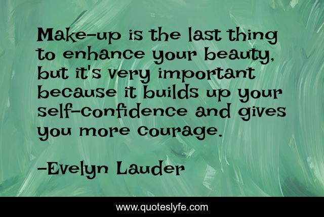 This page presents the quote "Make-up is the last thing to enhance your beauty, but it's very important because it builds up your self-confidence and gives you more courage.". Author of this quote is Evelyn Lauder. This quote is about self-confidence, beauty,.