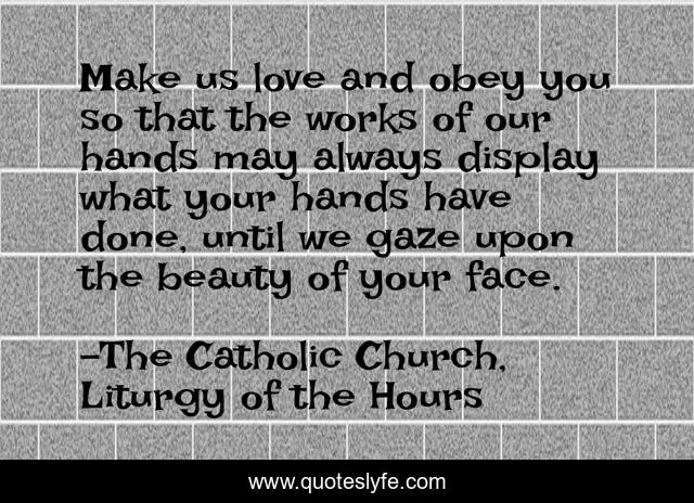 This page presents the quote "Make us love and obey you so that the works of our hands may always display what your hands have done, until we gaze upon the beauty of your face.". Author of this quote is The Catholic Church, Liturgy of the Hours. .