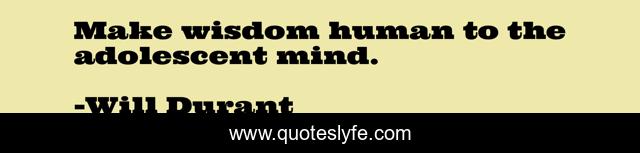 "Will Durant Quotes." Quoteslyfe.com, 2025. Tue. 09 Dec. 2025. <https://www.quoteslyfe.com/quote/Make-wisdom-human-to-the-adolescent-mind-206047>.