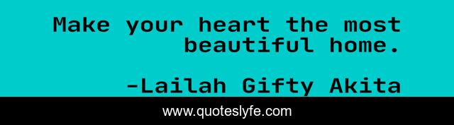 "Lailah Gifty Akita Quotes." Quoteslyfe.com, 2025. Fri. 05 Dec. 2025. <https://www.quoteslyfe.com/quote/Make-your-heart-the-most-beautiful-home-36598>.
