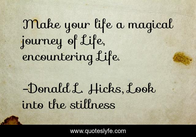 "Donald L. Hicks, Look into the stillness Quotes." Quoteslyfe.com, 2025. Fri. 05 Dec. 2025. <https://www.quoteslyfe.com/quote/Make-your-life-a-magical-journey-of-121296>.