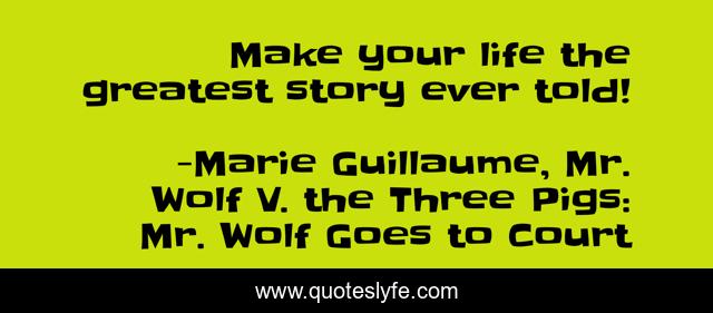 "Marie Guillaume, Mr. Wolf V. the Three Pigs: Mr. Wolf Goes to Court Quotes." Quoteslyfe.com, 2025. Sat. 06 Dec. 2025. <https://www.quoteslyfe.com/quote/Make-your-life-the-greatest-story-ever-205826>.
