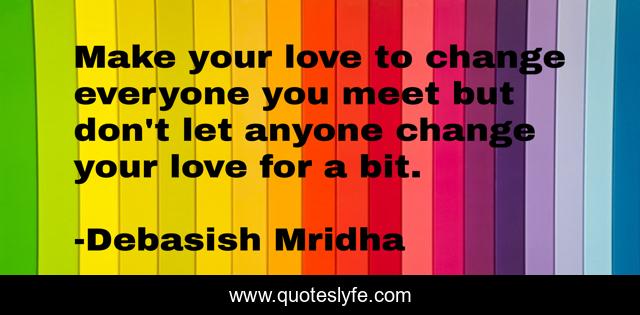 This page presents the quote "Make your love to change everyone you meet but don't let anyone change your love for a bit.". Author of this quote is Debasish Mridha. This quote is about life, love, knowledge, inspirational, intelligence, philosophy, wisdom, quotes, affection,.