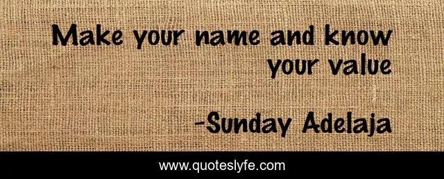 "Sunday Adelaja Quotes." Quoteslyfe.com, 2025. Fri. 05 Dec. 2025. <https://www.quoteslyfe.com/quote/Make-your-name-and-know-your-value-31217>.
