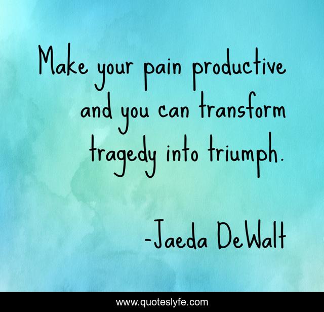 This page presents the quote "Make your pain productive and you can transform tragedy into triumph.". Author of this quote is Jaeda DeWalt. This quote is about life, pain, wisdom, healing, inspirational, enthusiasm, tragedy, triumph,.