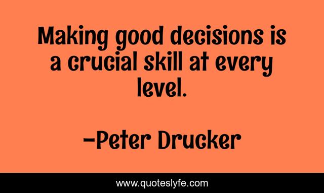 This page presents the quote "Making good decisions is a crucial skill at every level.". Author of this quote is Peter Drucker. This quote is about skill, good, decisions,.