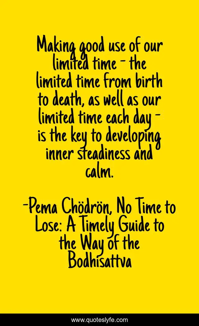"Pema Chödrön, No Time to Lose: A Timely Guide to the Way of the Bodhisattva Quotes." Quoteslyfe.com, 2025. Fri. 05 Dec. 2025. <https://www.quoteslyfe.com/quote/Making-good-use-of-our-limited-time-118044>.