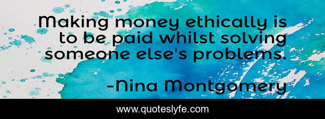 This page presents the quote "Making money ethically is to be paid whilst solving someone else's problems.". Author of this quote is Nina Montgomery. .