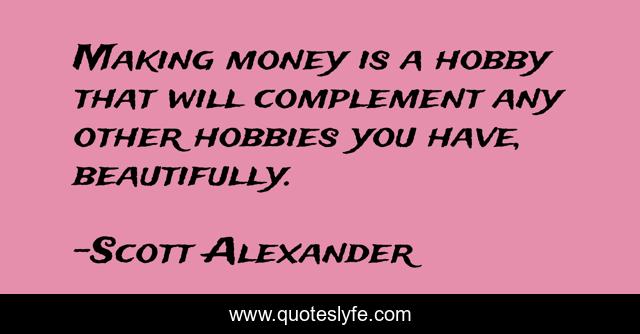 "Scott Alexander Quotes." Quoteslyfe.com, 2025. Sun. 07 Dec. 2025. <https://www.quoteslyfe.com/quote/Making-money-is-a-hobby-that-will-321462>.