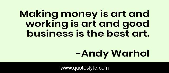 This page presents the quote "Making money is art and working is art and good business is the best art.". Author of this quote is Andy Warhol. This quote is about money, good, art,.