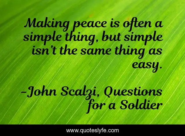 "John Scalzi, Questions for a Soldier Quotes." Quoteslyfe.com, 2025. Fri. 05 Dec. 2025. <https://www.quoteslyfe.com/quote/Making-peace-is-often-a-simple-thing-73505>.