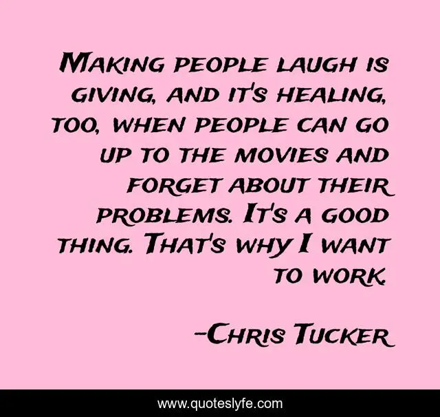 This page presents the quote "Making people laugh is giving, and it's healing, too, when people can go up to the movies and forget about their problems. It's a good thing. That's why I want to work.". Author of this quote is Chris Tucker. This quote is about work, good, healing,.