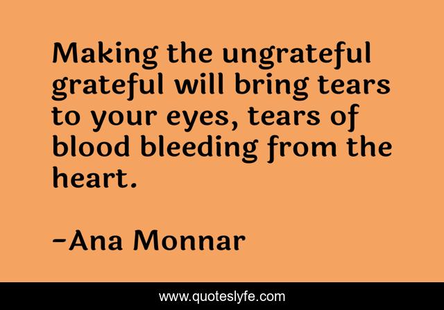 This page presents the quote "Making the ungrateful grateful will bring tears to your eyes, tears of blood bleeding from the heart.". Author of this quote is Ana Monnar. This quote is about gratitude, ungrateful, pain, grateful,.