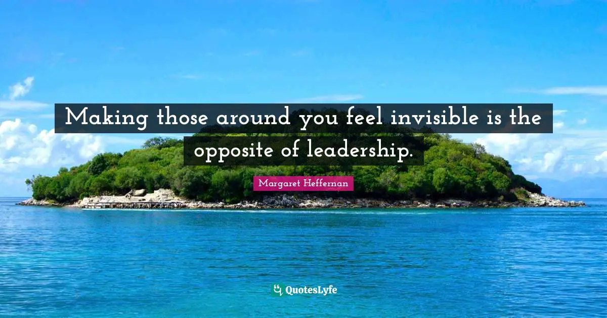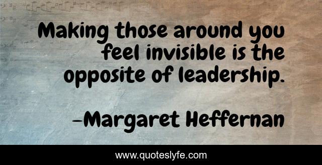 This page presents the quote "Making those around you feel invisible is the opposite of leadership.". Author of this quote is Margaret Heffernan. This quote is about feel, invisible,.