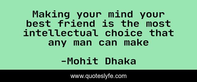 This page presents the quote "Making your mind your best friend is the most intellectual choice that any man can make". Author of this quote is Mohit Dhaka. This quote is about mind, intellectual, mindfulness,.