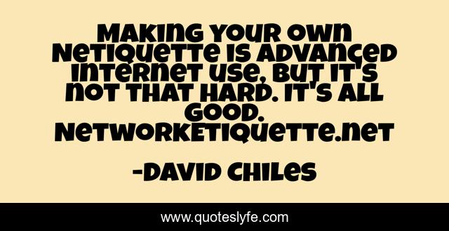 "David Chiles Quotes." Quoteslyfe.com, 2025. Fri. 05 Dec. 2025. <https://www.quoteslyfe.com/quote/Making-your-own-Netiquette-is-advanced-internet-236960>.