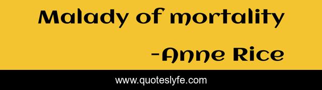 This page presents the quote "Malady of mortality". Author of this quote is Anne Rice. This quote is about the-vampire-lest-at, death, lestat, mortality, vampire-chronicles,.