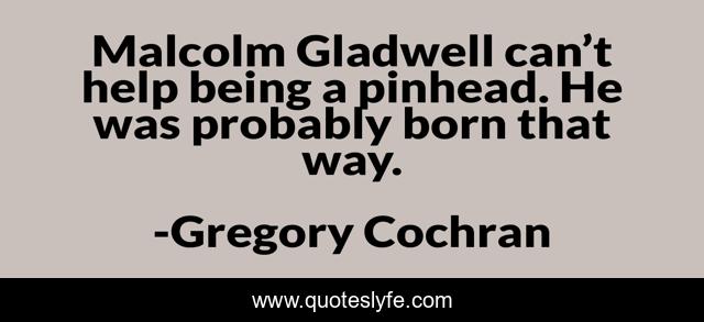 This page presents the quote "Malcolm Gladwell can’t help being a pinhead. He was probably born that way.". Author of this quote is Gregory Cochran. This quote is about malcolm-gladwell, fools, heredity, stupidity,.