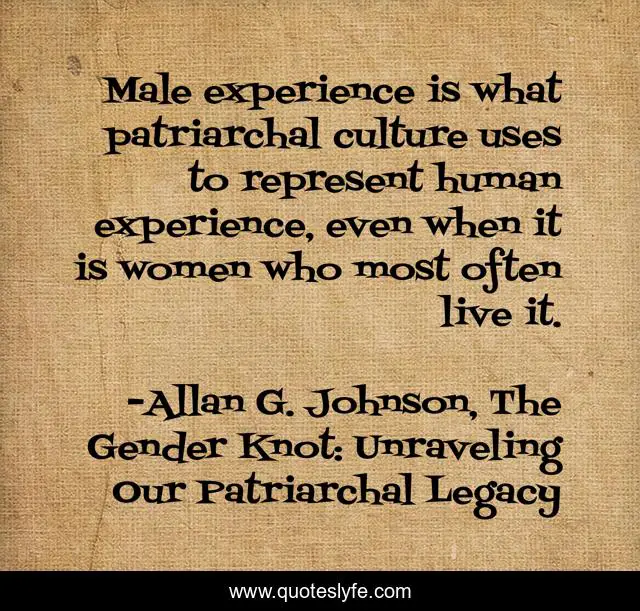 "Allan G. Johnson, The Gender Knot: Unraveling Our Patriarchal Legacy Quotes." Quoteslyfe.com, 2025. Sat. 06 Dec. 2025. <https://www.quoteslyfe.com/quote/Male-experience-is-what-patriarchal-culture-uses-102093>.